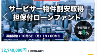 ソーシャルレンディング CAPIMAの【短期:6ヶ月】サービサー物件割安取得 担保付ローンファンド#3に出資しました。 既に応募が3千万円を超えて、ファンドとしては成立していますね。【広告リンク】[サービス内容の確認や新規会員登録等でご利用ください]実は「サービサー物件割安取得 担保付ローンファンド」の#1が今月末に償還予定です。CAPIMAは出資申し込み時... 2025.10.06 ソーシャルレンディング