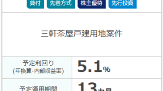 比較的短期間で応募が満額に達しました。【広告リンク】[サービス内容の確認や新規会員登録等でご利用ください]年末大感謝ファンドのファイナルが出ましたので、オルタナバンクも今年の募集完了が近いでしょうかね。