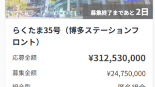 今回の募集額は1,250万円と比較的少額のため応募がすぐに満額に到達です。運用期間が18ヶ月とやや長めですが、担保状況や募集規模を踏まえると元本毀損のリスクはかなり低いと判断しました。長期運用でじっくり利回りを取りにいくタイプの案件ですね。