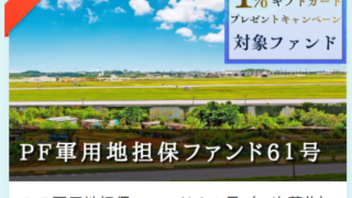 【軍用地担保ファンド限定】最高10万円分Amazonギフト券プレゼントキャンペーン開催中です。【広告リンク】[サービス内容の確認や新規会員登録等でご利用ください]軍用地担保ファンドは貸し倒れリスクが低く、堅実性の高い案件ですね。なお現在は6...