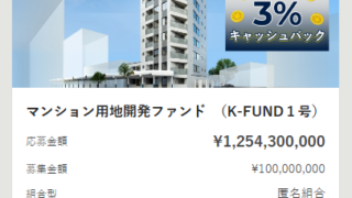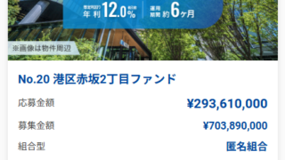 No.2、No.4 どちらも資金拘束期間は100日程度で運用期間がかなり短期ですが、しっかりと配当をいただき満足です。現在はNo.20 港区赤坂2丁目ファンドが先着順で募集中ですが、最低出資額が1口ではなく10口10万円のためか、やや応募が...