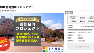 ソーシャルレンディング TAMBOの第10号、葛飾金町プロジェクトに出資しました。