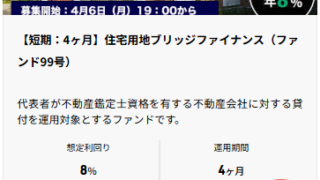 本当は軍用地担保ファンドを狙っていたのですが、待ちきれずに、デポジット口座にあった少額を沖縄ファンド40号に充てました。【広告リンク】[サービス内容の確認や新規会員登録等でご利用ください]Pocket Fundingへの現在出資中の案件の次...