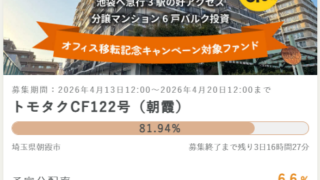 ソーシャルレンディング トモタクCF122号(朝霞)ファンドに出資しました。