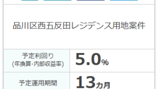 ソーシャルレンディング 先日Owners Bookから2件、渋谷新築マンション案件と中央区勝どきマンション案件が償還されました。 Owners Bookの案件は早期償還が多いですね。【広告リンク】[サービス内容の確認や新規会員登録等でご利用ください]現在は品川区西五反田レジデンス用地案件が募集中ですが、応募状況はあまり芳しくない様です。そういう私もデポジット口座に資金... 2026.03.02 ソーシャルレンディング